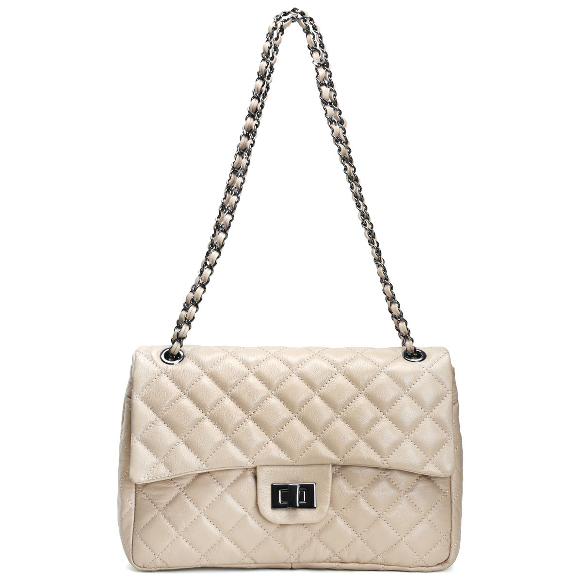 Bolsa Feminina Couro Legitimo Matelassê Grande Nude C/ Grafite